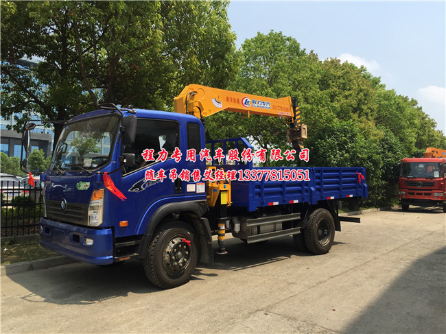 可以拉电杆(拉电线杆)的车型-选重汽王牌随车吊-王牌牌CDW5121JSQHA2R4型随车起重运输车,轴距(mm)3900,总质量(Kg)11995,825-20轮胎,五档带副,250的大梁,4.3米的大厢,大厢里加装6方洒水罐,也可以在大臂上加装一个斗等等多功能随车吊。重汽王牌随车吊更换新的转向助力器,加足转向助力油,试车,故障即告排除。