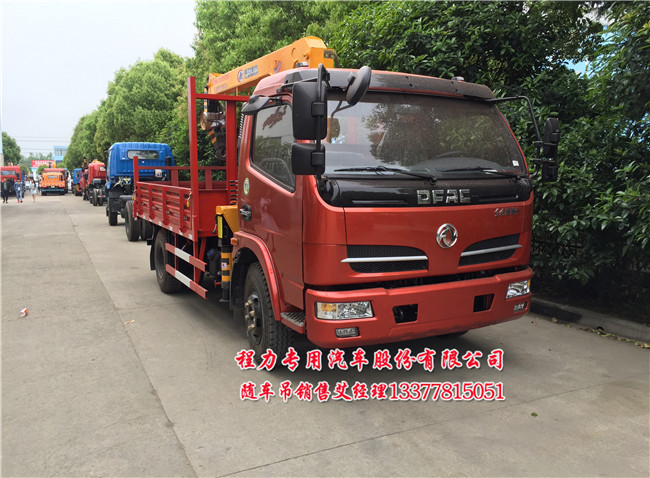 蓝牌东风福瑞卡随车吊配2吨三节直臂的主要参数:SQ2SK2Q三节折臂吊机(举升高度9米 ,工作半径7 .7米) 最大起重量:2吨,最小起重量度0.255吨