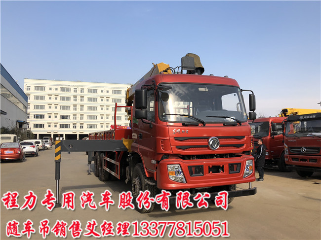 东风特商随车吊配吊机大小与用户吊货物大小相关,SQ12SK3Q直臂吊机参数:2.5米吊12吨;3米吊9.7吨; 4.5米吊6.4吨; 6米吊4.4吨; 7米吊2.7吨;9米吊12吨;10米吊2.18吨;12.5米吊1.8吨;