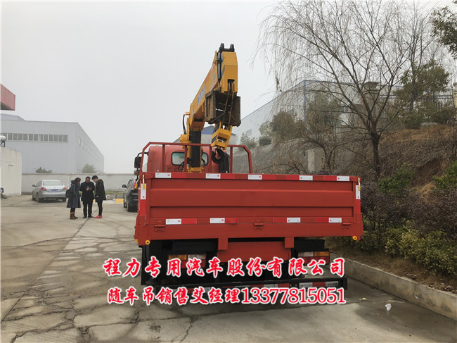 6.3吨5吨大运蓝牌随车吊最大马力_大运170马力,125功率,是所有蓝牌车型中唯一一环大马力车型,8吨的后桥;大运蓝牌随车吊在岸边、码头等处作业时,随车吊不得快速回转,以防因惯性力作用随车吊发生落水。载荷定位。载荷定位要求精确控制吊臂和回转运动,把载荷放到准确位置,即不摆动也不过头。