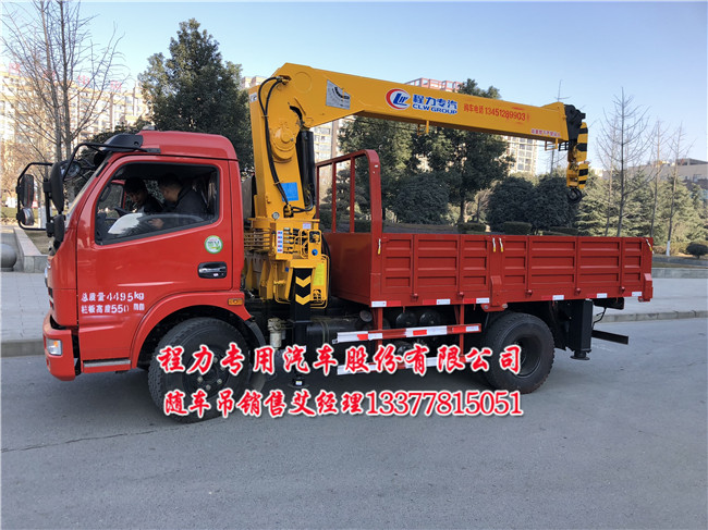 东风福瑞卡蓝牌随车吊因整车很扎实,整车自重超重,配2吨吊机就超,因此吊机配的越大,整车超的越多。所以用 户在购车时一定确定上户问题,在随州我们包上户的。