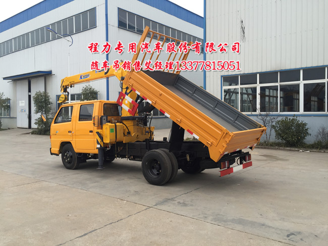 2吨3.2吨蓝牌双排随车吊车型东风和江铃:江铃双排驾驶室_江铃五十铃116马力发动机_7.00胎_油刹_五档箱前桥2T后桥3.5T;东风双排700轮胎,玉柴115马力。5档箱,188的大梁。
