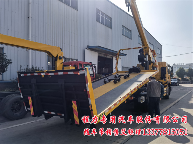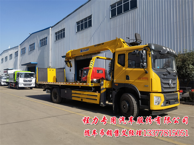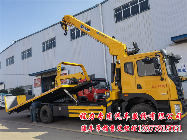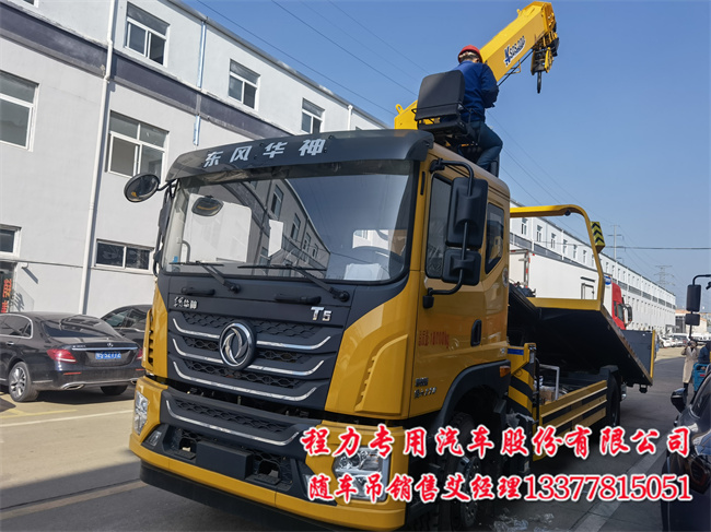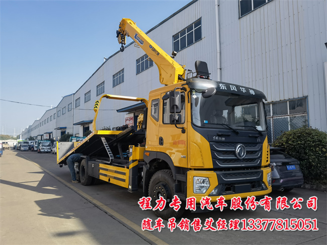五环大力神8吨东风华神T5一拖二清障车随车吊8吨施救车带吊销售电话及吊机配件,这是一款可吊货拉货及清障为一体多功能随车吊,但主要还是以施救为主的随车吊,后面可拖小车,上面可背小车,吊机可配8吨,大臂顶端可加一个吊蓝,可装广告牌及电力用,可拉一些大件货-中转也行,整车价格一律按成本核算,8吨大力神清障车带吊的整车价格在31W+,当然用户可选其它品牌吊机徐工,三一,程力及长兴等等。其价格都不同,请业电咨询。
