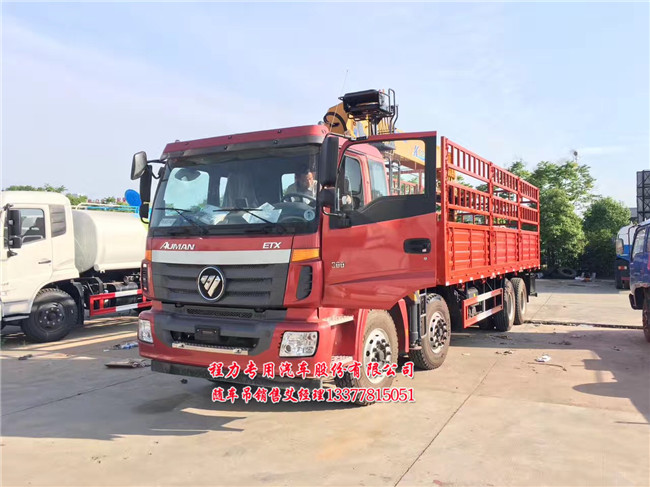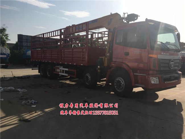 欧曼前四后八随车吊BJ国五排放标准最大300马力重要配置:2100+4500+1350 ETX2420平顶驾驶室、气囊座椅、倒车雷达、电动门窗 , 带取力器 457桥13吨 11.00-20 300马力康机超能动力 ,11785上牌吨位。要说这款前四后八国五随车吊配几吨吊机,这个要说用户一般吊几吨货,并且在几米之内吊货,此车一般配16吨各大品牌吊机,最大配25吨及8吨直折臂吊机。