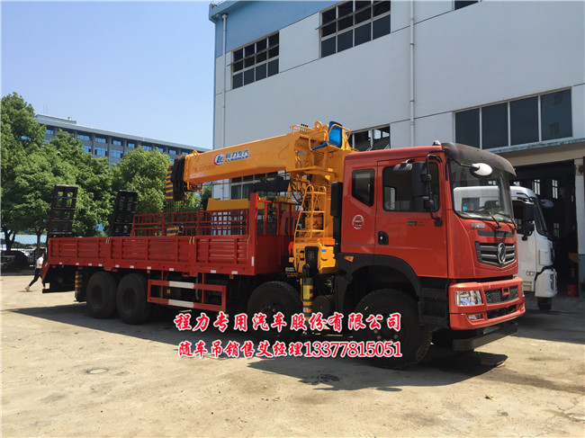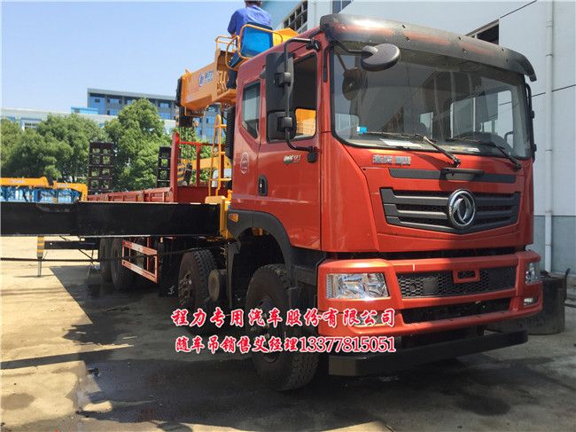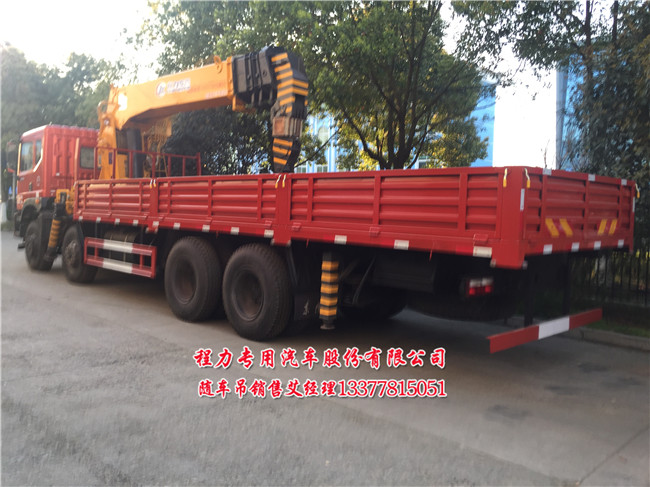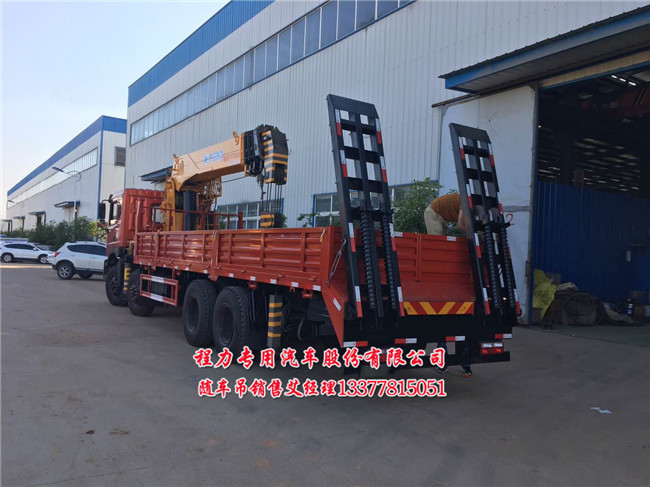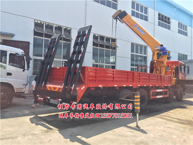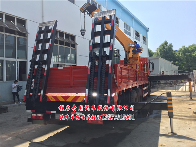 带平板东风前四后八随车吊拉大型挖机主要配置:YC6A270-50马力国五随车吊国五排放发动机,1100钢丝钢,九档法士特变速箱,可以配16吨及16吨以下的直折吊臂。 随底盘选装驾驶室.选装箱板结构,驾驶室上方选装不带遮阳板,选装上/中座椅操作,可选装直臂式或折臂式吊机,直臂式吊机型号:吊机重量(kg)/最大起升载荷(kg)分别为:1,(SQS350,QYS-14,SPS35000,ZLC3500)/5500/14000;2,(SQS400,QYS-16,SPS40000,ZLC4000)/6580/16000;折臂式吊机的分别为:1,(SQZ350,QYS-14Z)/5500/14000; 2,(SQZ400,QYS-16Z)/6580/16000;