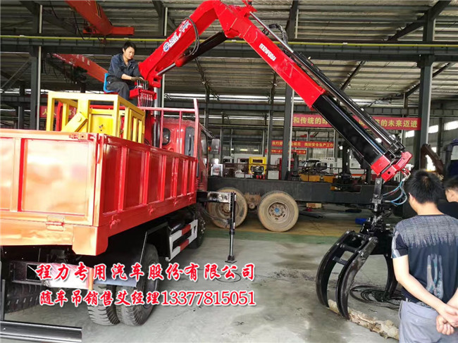 抓木随车吊抓具蓝牌抓木随车起重运输车重汽王牌抓木随车吊最大可以配6.3吨5吨折臂吊机,当然5吨以下吊机也可以配的,因为是蓝牌抓木随车吊,整车不能超过6米,上户吨位不超过1.5吨,总重量不过4.5吨。抓木蓝牌随车吊这款,只能配折臂吊机,因为要在吊臂顶端配一个可以360全旋转抓木夹具。按国家标准排放是国五随车吊。